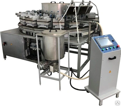 формы (плиты) изготавливаются из чугуна марки СЧ20. Чугун благодаря высокой теплоемкости обеспечивает равномерную выпечку вафли и легко очищается от нагара. Верхняя половина открывается по направляющей для съема и последующей дозировки и по ней же закрывается. Замок фиксирует половины по время выпечки