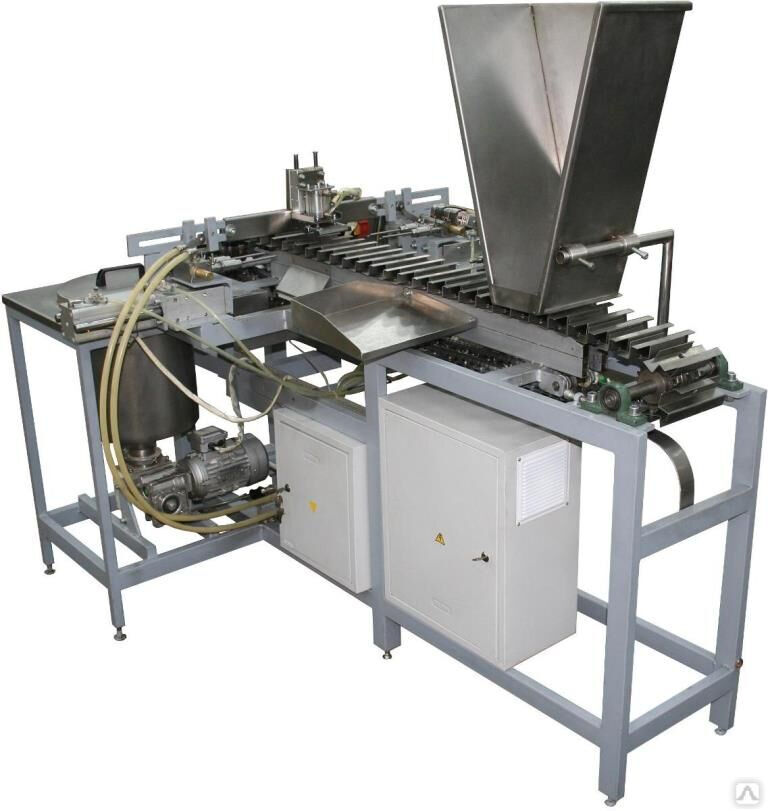 Трубочки наполняются начинкой одновременно по 2 шт. На машине установлены 4 иглы – по 2 с каждой стороны. Забор пустых трубочек (гильз) происходит из бункера ручной загрузки или из устройства скрутки. Перед дозировкой машина проверяет Если одна ячейка пустая, а вторая с трубочкой, то гильза сдувается с конвейера. Если обе ячейки пустые, то происходит перемещение на 2 следующие позиции. Пустые ячейки не дозируются.